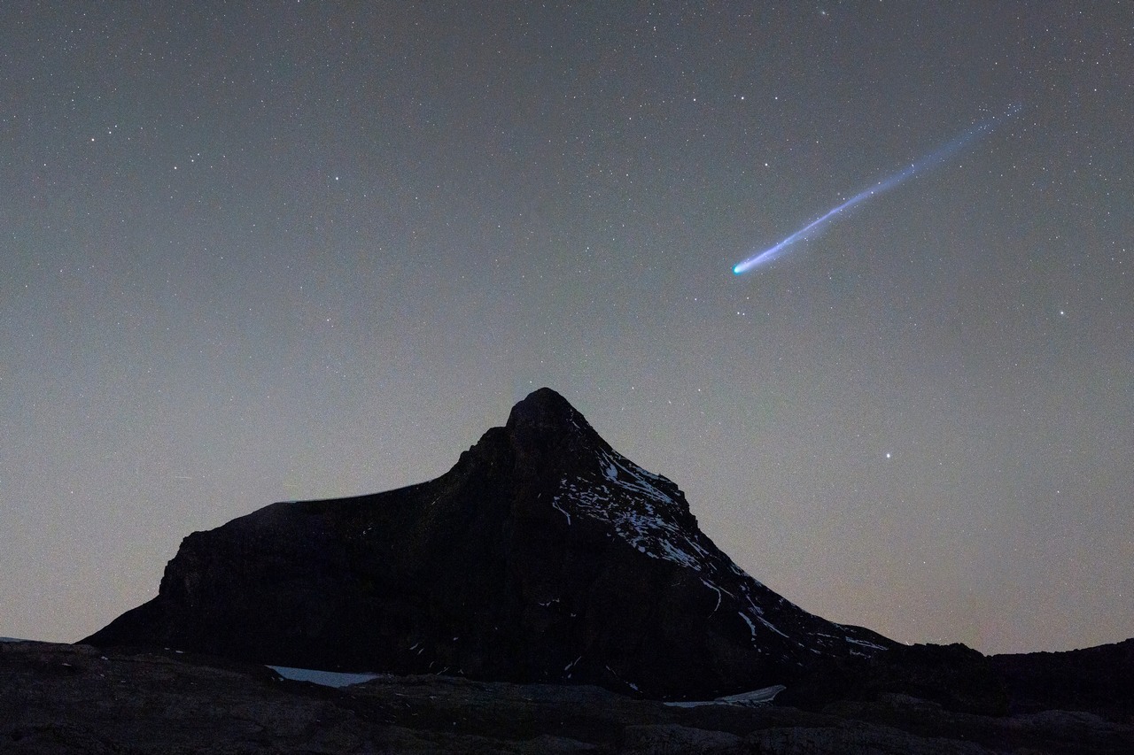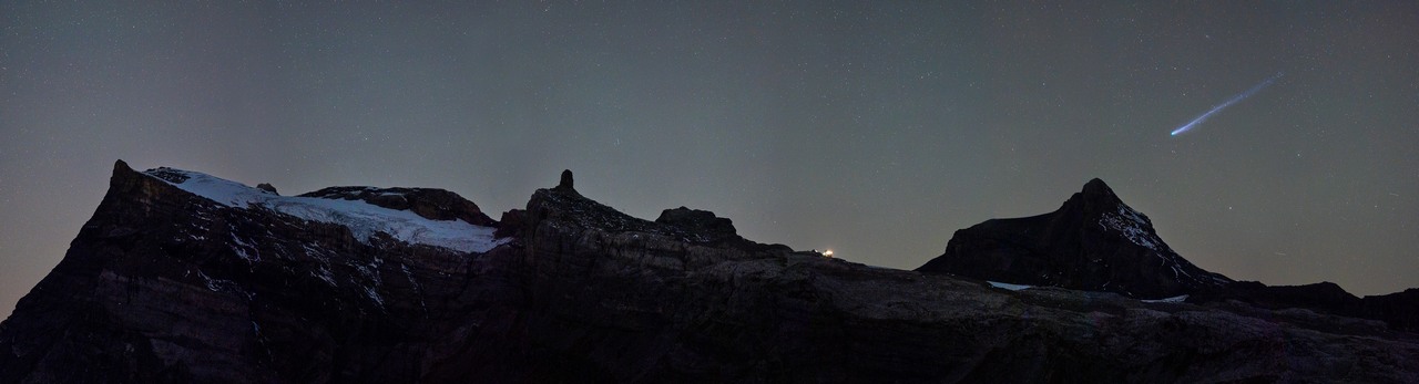 Ma deuxième idée de composition était de capturer la comète au-dessus du glacier d’Aletsch mais malheureusement, le mauvais temps a empêché toute réalisation de cette image. Ce sera pour la prochaine fois ? Elle n’aura pas été aussi spectaculaire que la comète Néowise dont vous pouvez lire l’article ici
