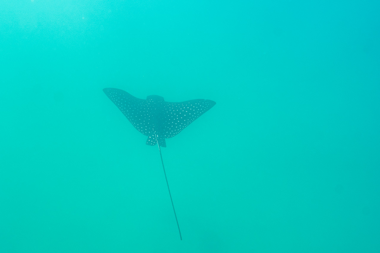Un peu plus loin, je croise deux raies léopards. Je tente de les suivre mais bien plus rapides et agiles que moi, je les perds rapidement dans ces eaux troublées.